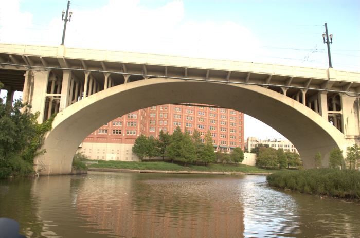 Running through the heart of Houston is a waterway that was used by the founders of H-town. Many years ago the Allen brothers floated up the waterway and landed in what in now downtown Houston. Fitingly the spot is now called “Allen’s Landing”. It’s now used for parties, city events and just a good old afternoon picnic. Sad to say it is also the home to some of Houston’s homeless community.