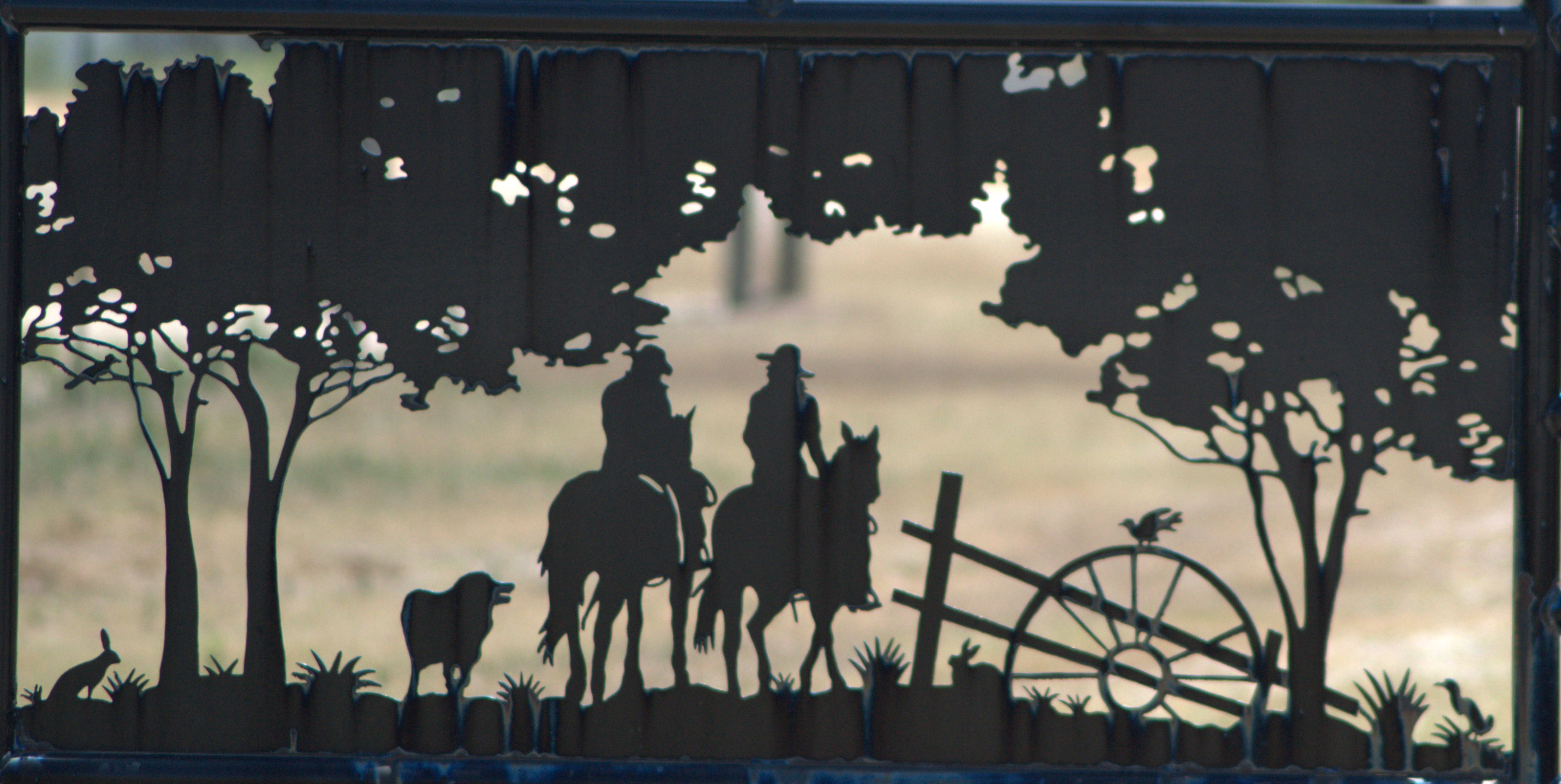 Then I came across some art work cut out of metal and installed in a gate. Someone did some great metal working on these”. One on each side of the gate.
