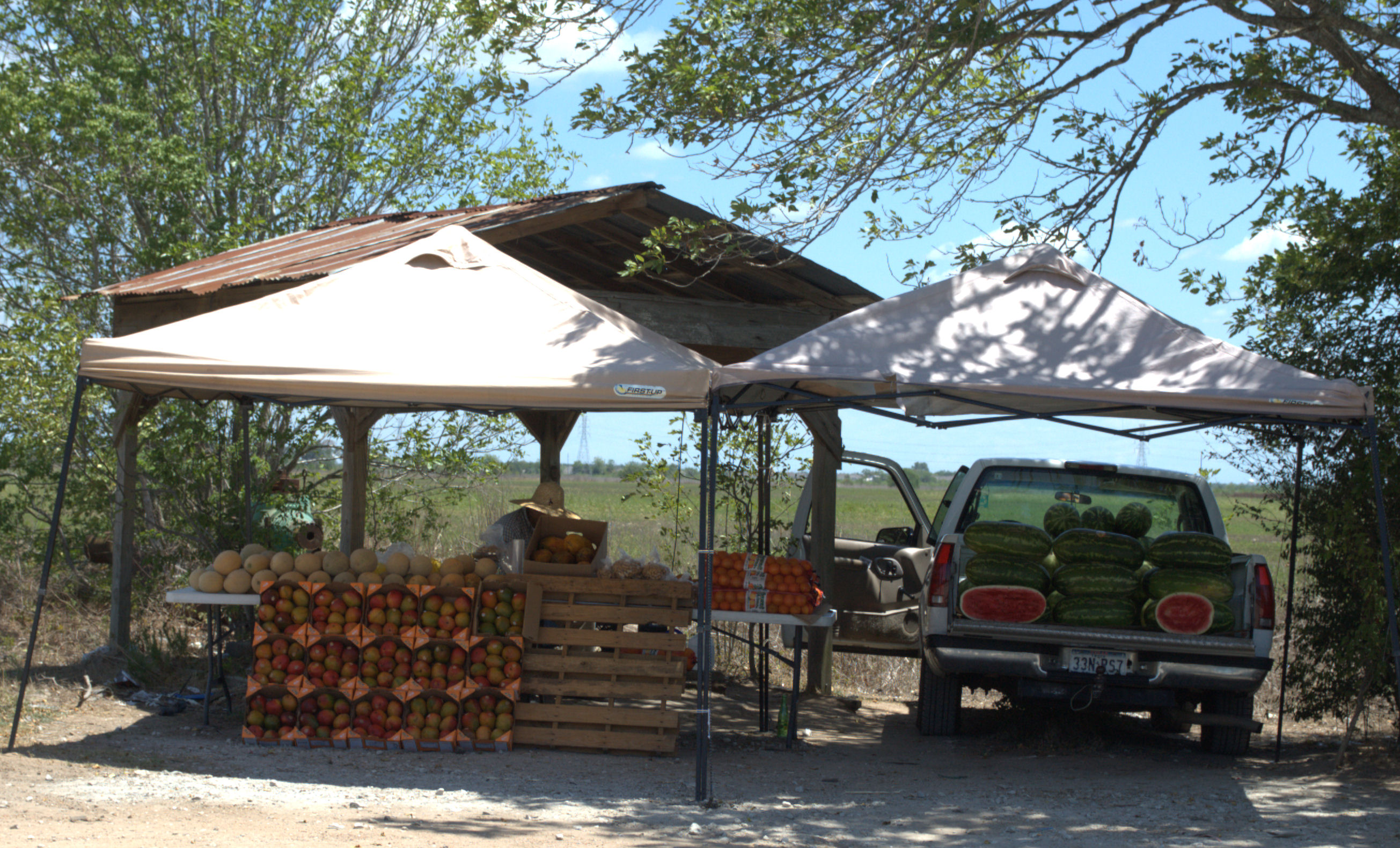 This guy found some shade and made some of his own. He gave me a slice of watermelon which was good. They were nice ,large, red and tasted good. He wanted 10 bucks and I didn’t have that much cash so I settled for a 3 dollar cantaloupe. It’s in my frig waiting to be sliced and eaten, maybe tomorrow.